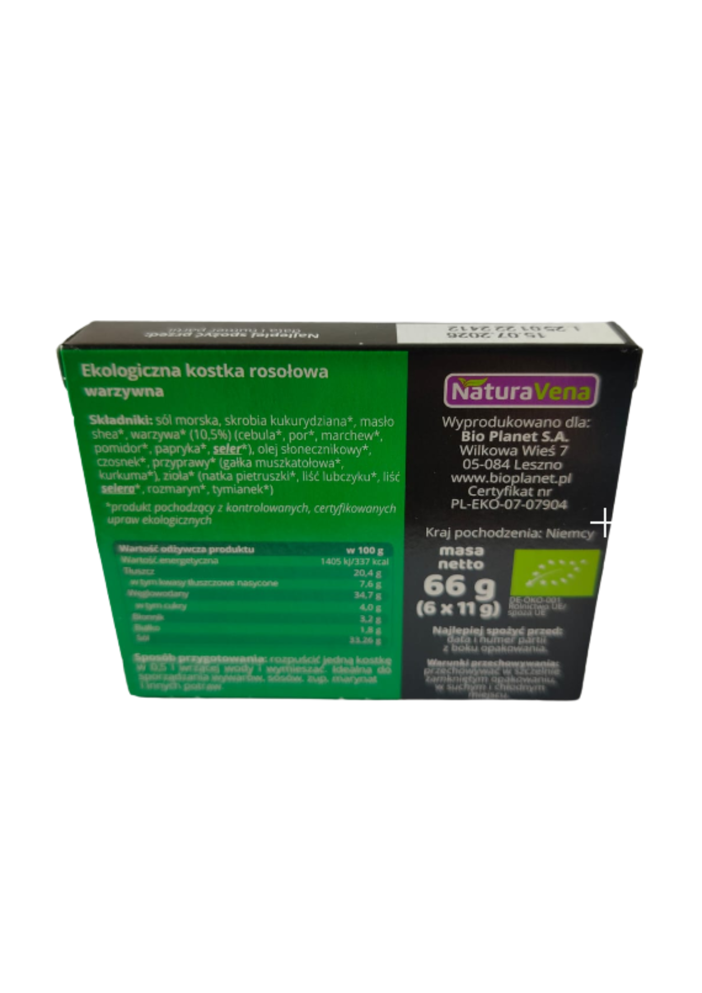 Ekologiczna kostka rosołowa od NaturaVena to idealna propozycja dla osób, które cenią naturalny smak i skład bez kompromisów. Produkt powstał z warzyw pochodzących z certyfikowanych upraw ekologicznych, bez dodatku oleju palmowego i glutenu.