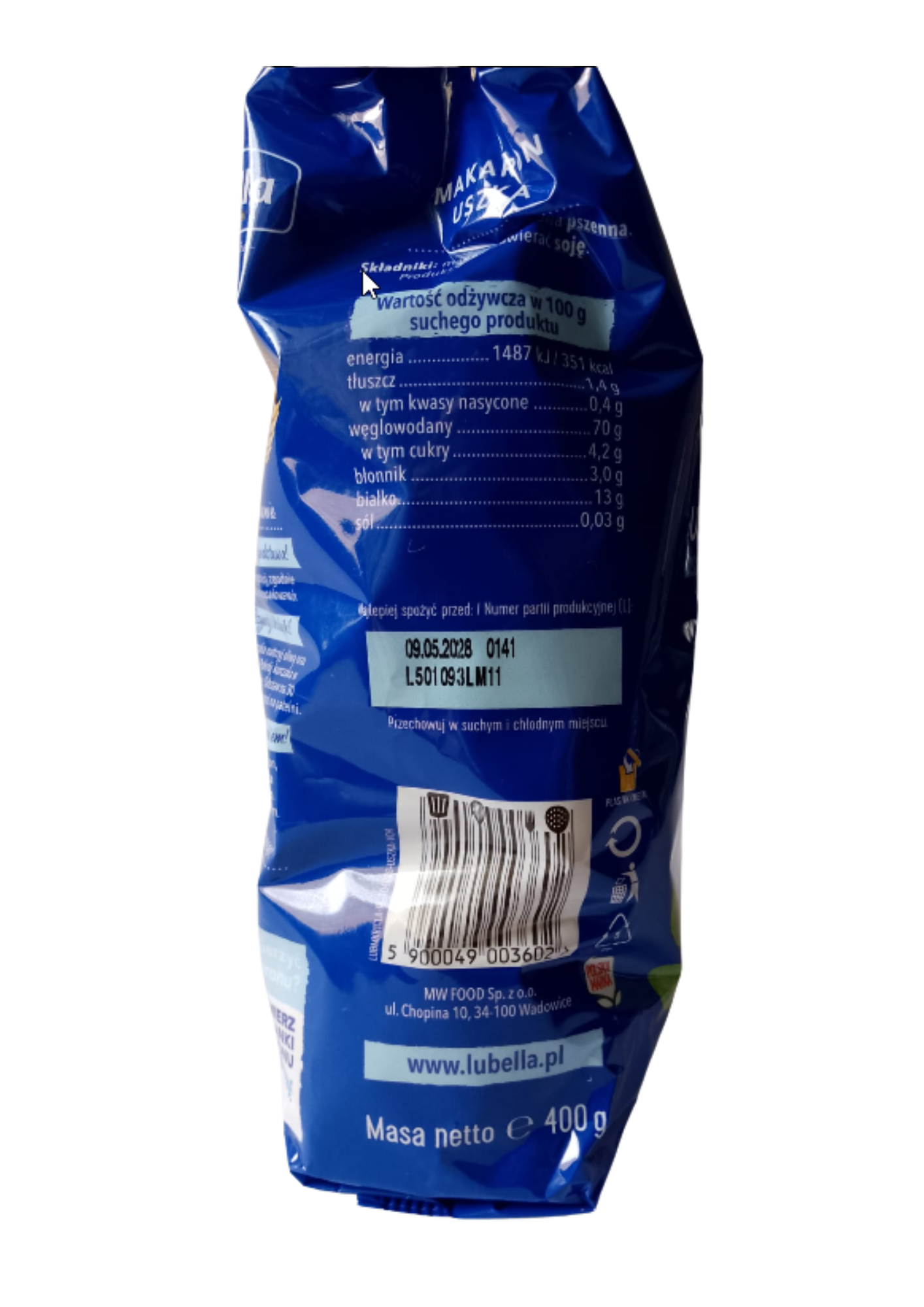 Lubella Uszka to wyjątkowy makaron w kształcie małych pierścieni (dischi volanti), inspirowany tradycyjną włoską formą, idealny do zup, dań jednogarnkowych oraz lekkich sałatek. Wytwarzany z najwyższej jakości mąki pszennej, zachwyca nie tylko smakiem, ale i szybkim czasem gotowania – 8 minut do konsystencji normalnej lub 6 minut al dente.