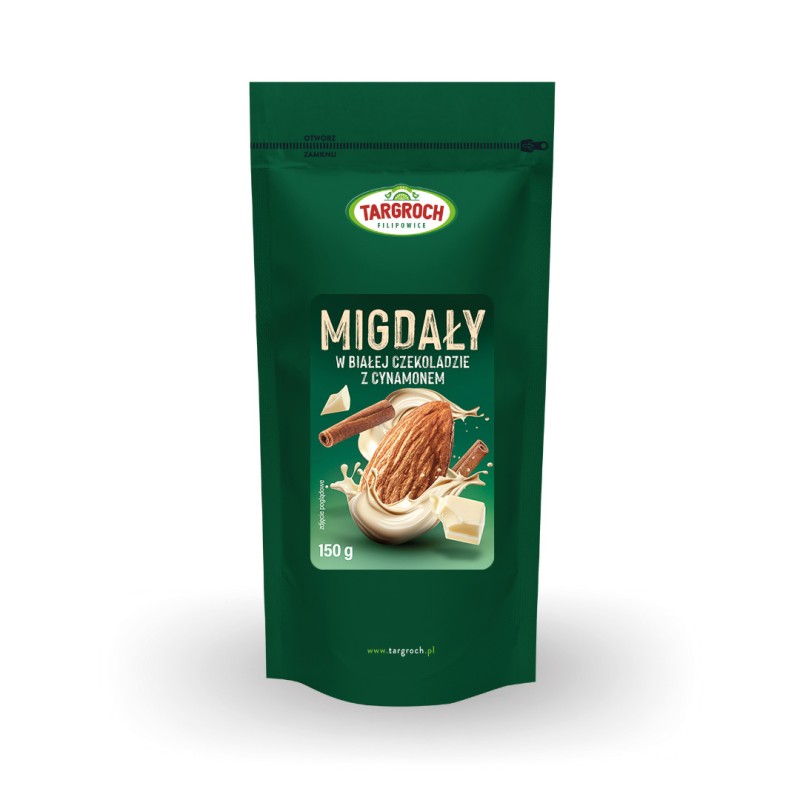 Połączenie delikatnej białej czekolady z nutą cynamonu i chrupiącym migdałem. Idealna słodka przekąska na każdą okazję – do pracy, szkoły, filmu czy na spacer.