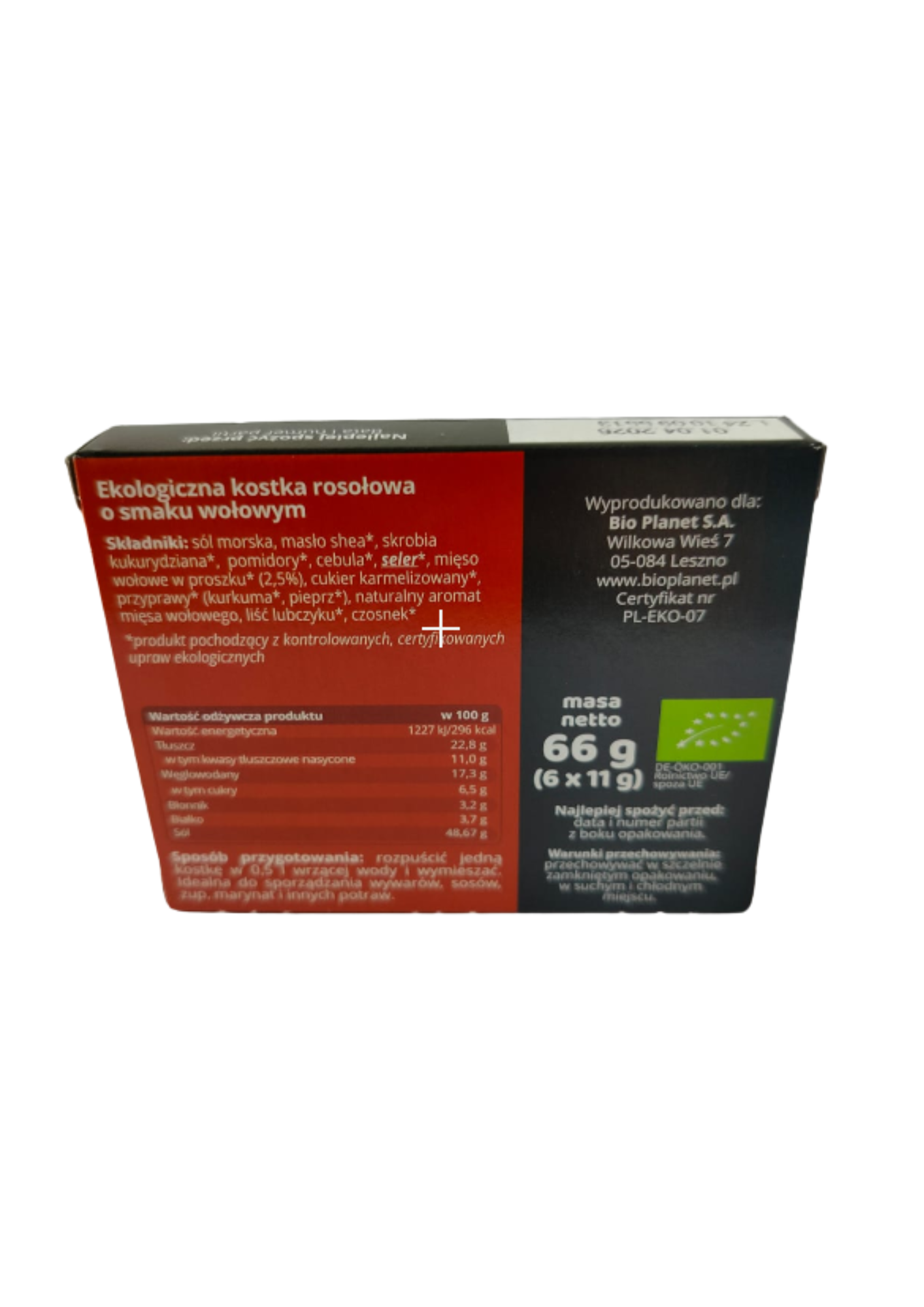 Ekologiczna kostka rosołowa o intensywnym smaku wołowiny – idealna do przygotowania tradycyjnych zup i sosów. Wyprodukowana bez oleju palmowego i bez glutenu, na bazie naturalnych składników i przypraw z upraw ekologicznych.
