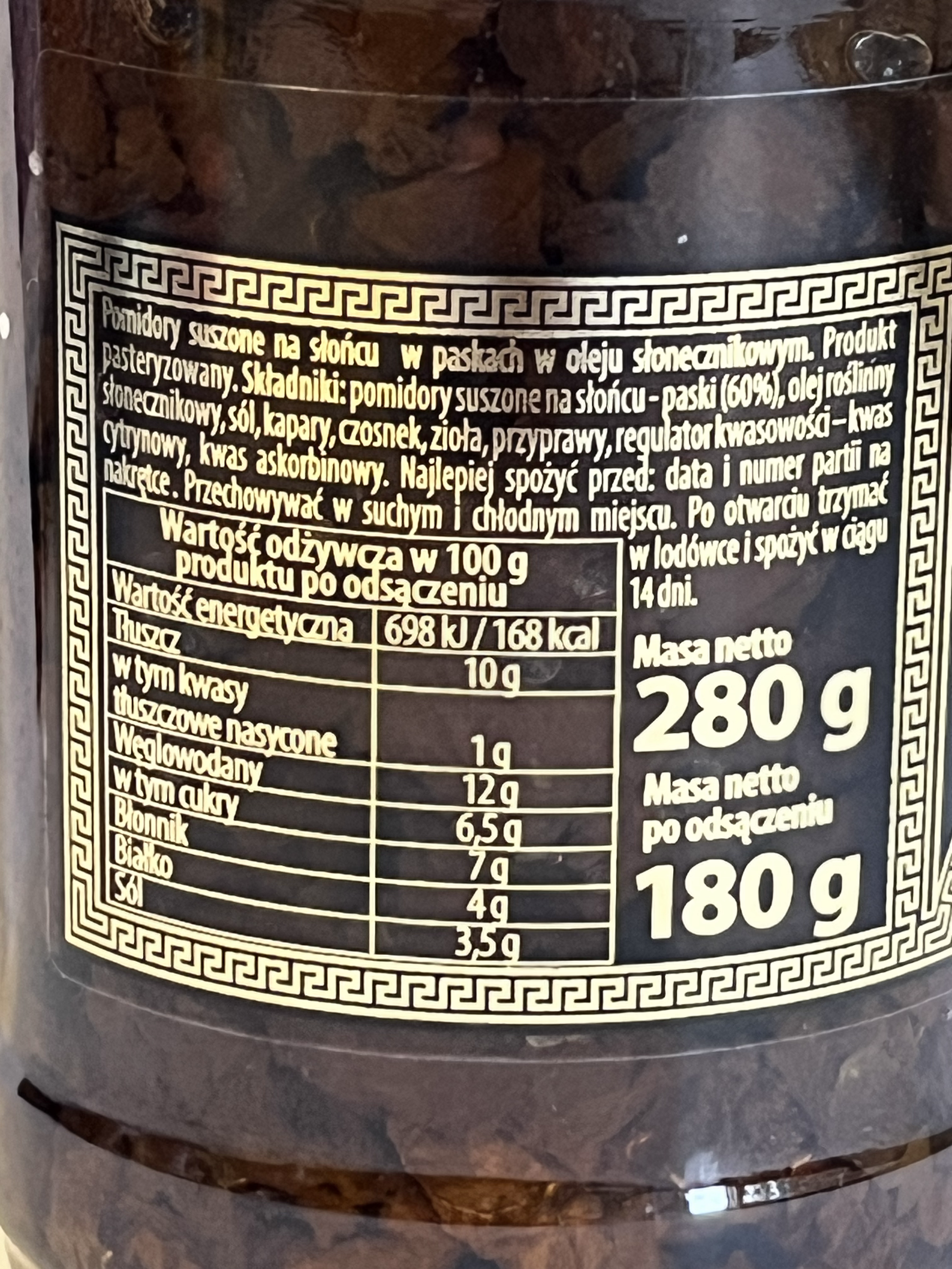 - doskonały dodatek do sałatek, makaronów, kanapek, tapas i dań śródziemnomorskich