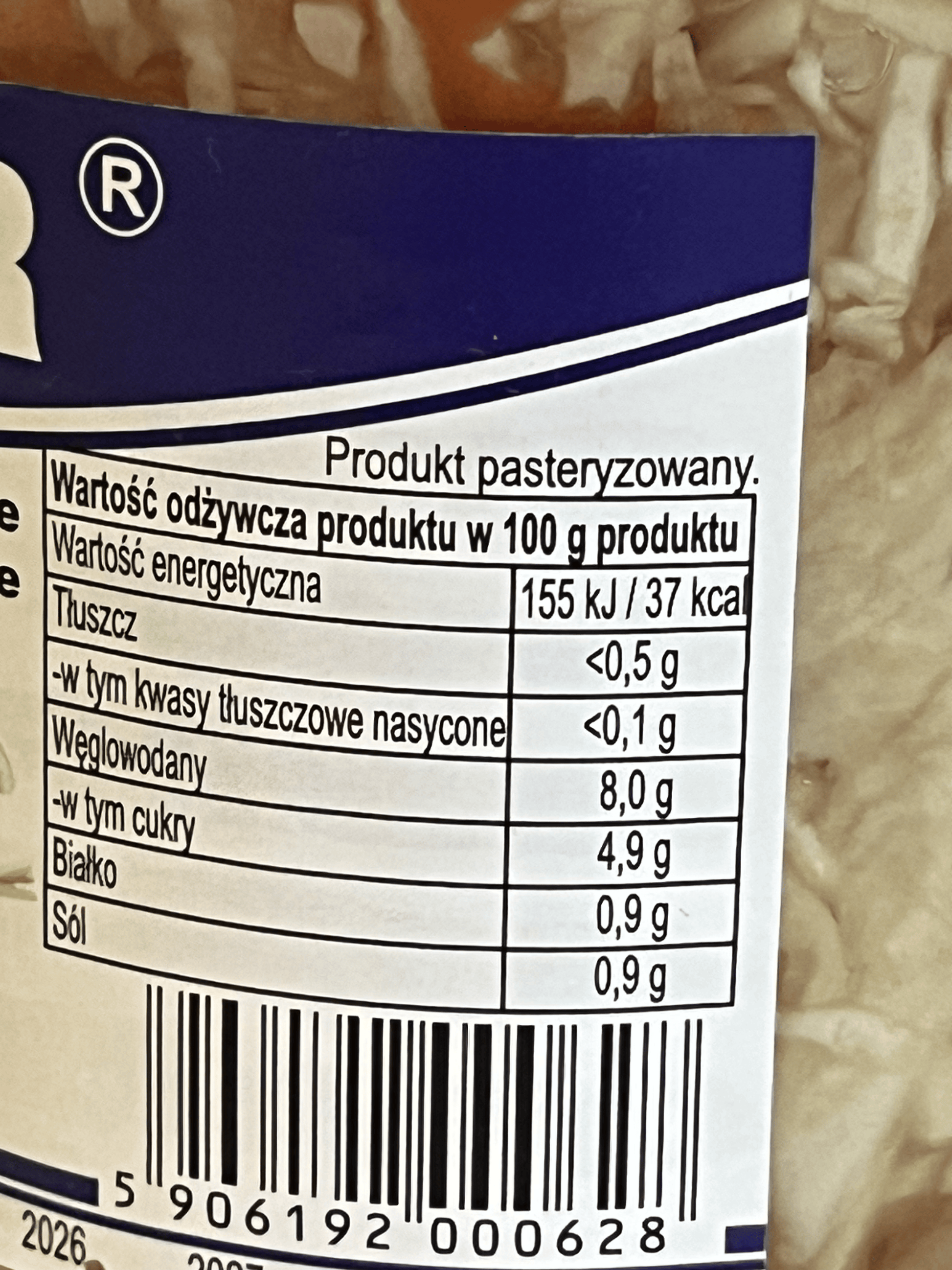 - Wartość energetyczna: 155 kJ / 37 kcal