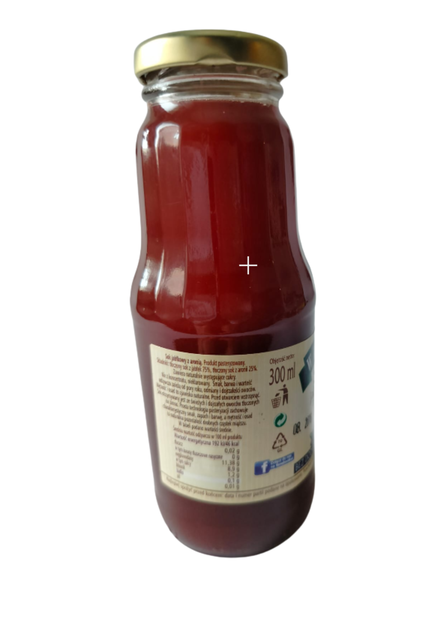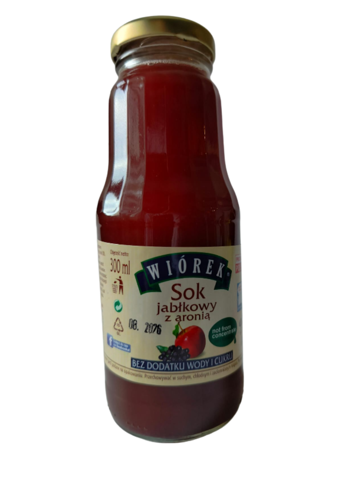Naturalny sok pasteryzowany, tłoczony z jabłek (75%) i aronii (25%). Nie z koncentratu. Bez dodatku cukru, wody, konserwantów ani barwników. Aronia nadaje napojowi głęboki kolor i lekko cierpki smak, a jednocześnie dostarcza cennych antyoksydantów. To doskonały wybór dla osób dbających o odporność i serce.
