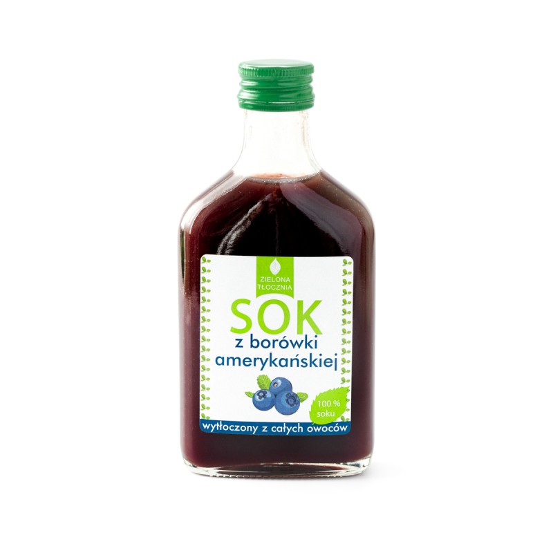 - 100% sok z borówki amerykańskiej, tłoczony z całych owoców